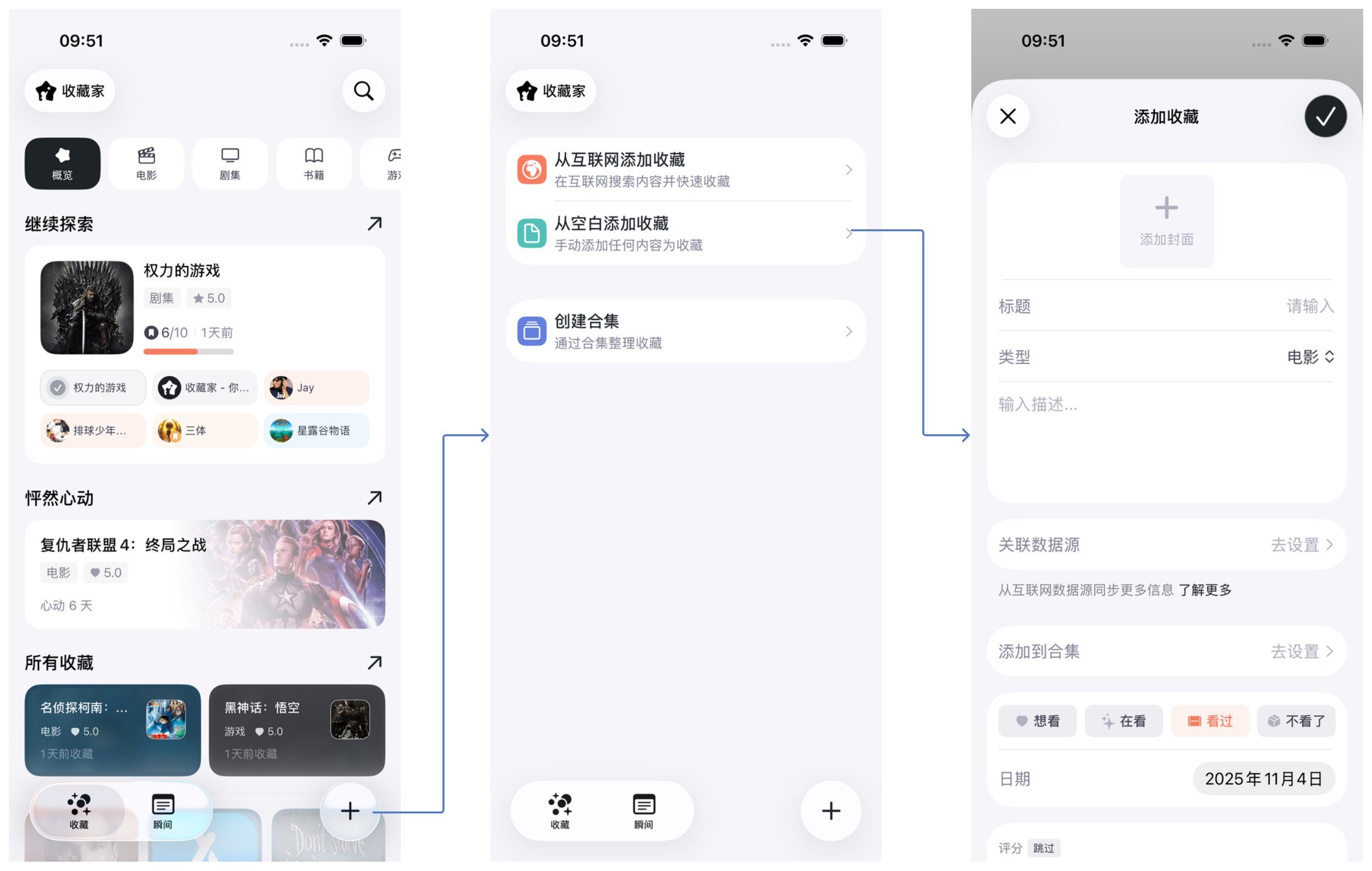 每个状态意味着一个瞬间,每个收藏都可以用多个瞬间来持续追踪。在收藏家里与你的收藏创造更多瞬间吧!