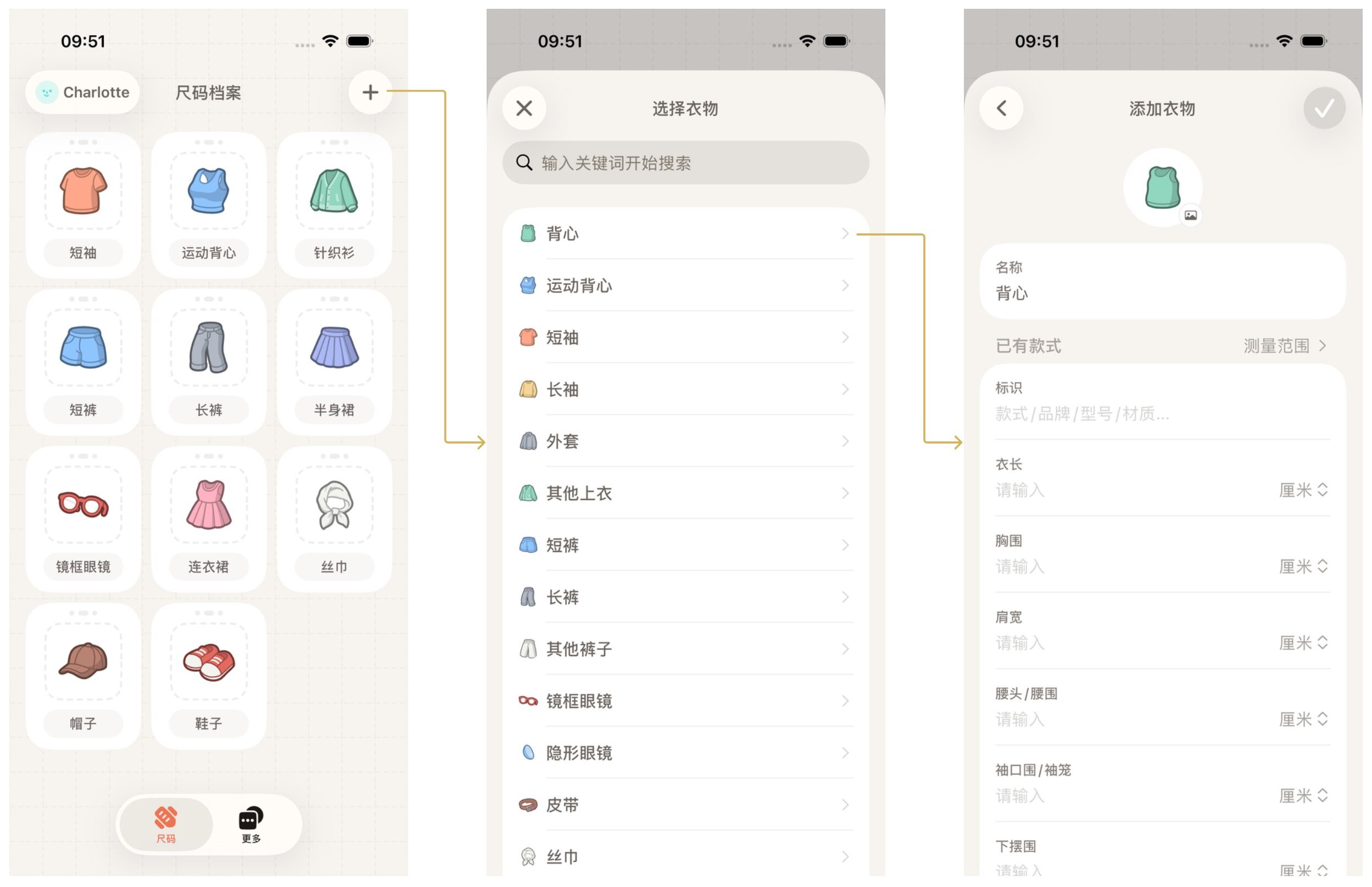通过记录身材数据和衣物信息,应用能在购物前快速为你推荐最合适的尺码。