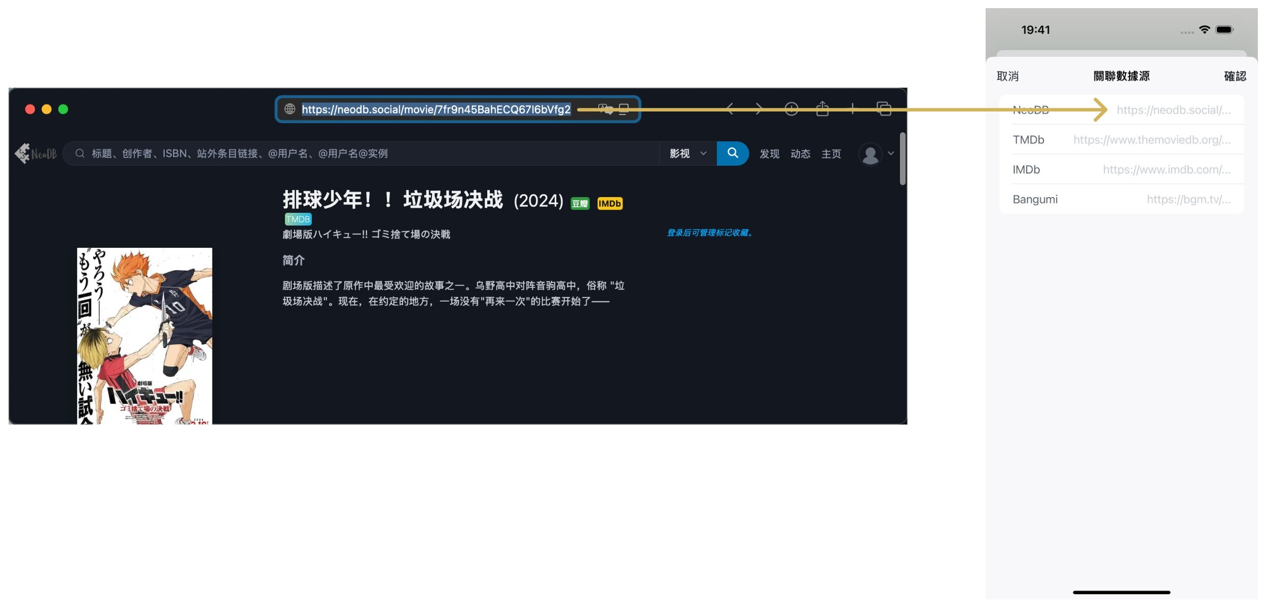 以 NeoDB 爲例,如圖所示覆制鏈接粘貼進去後即完成關聯。